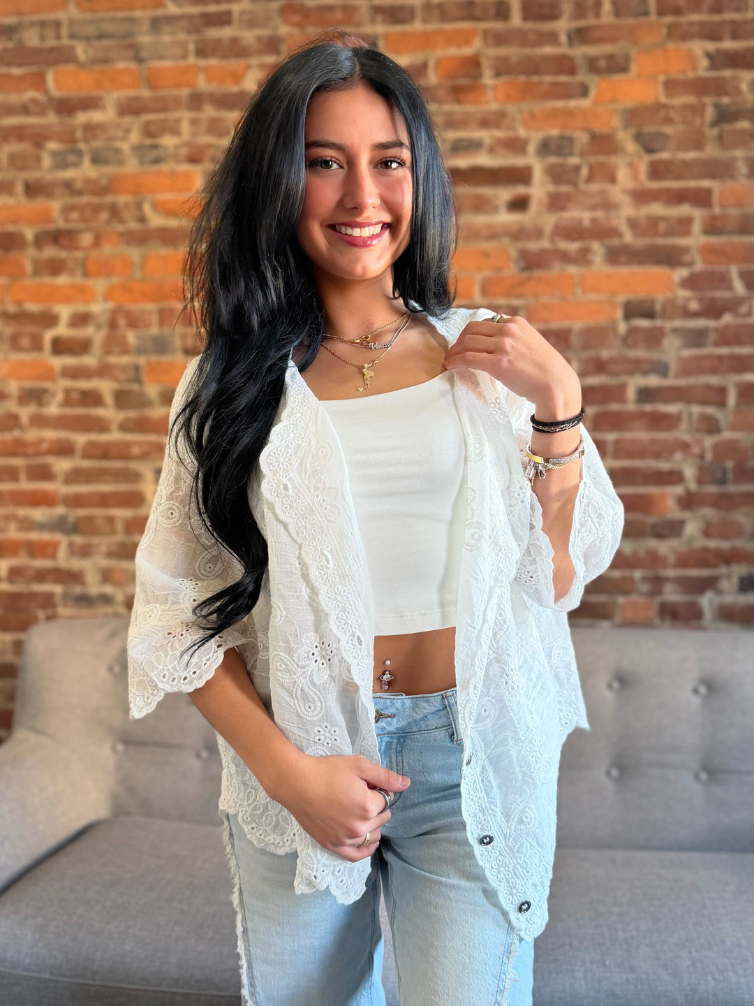 Ivory Floral Front Twist Eyelet Maxi Dress