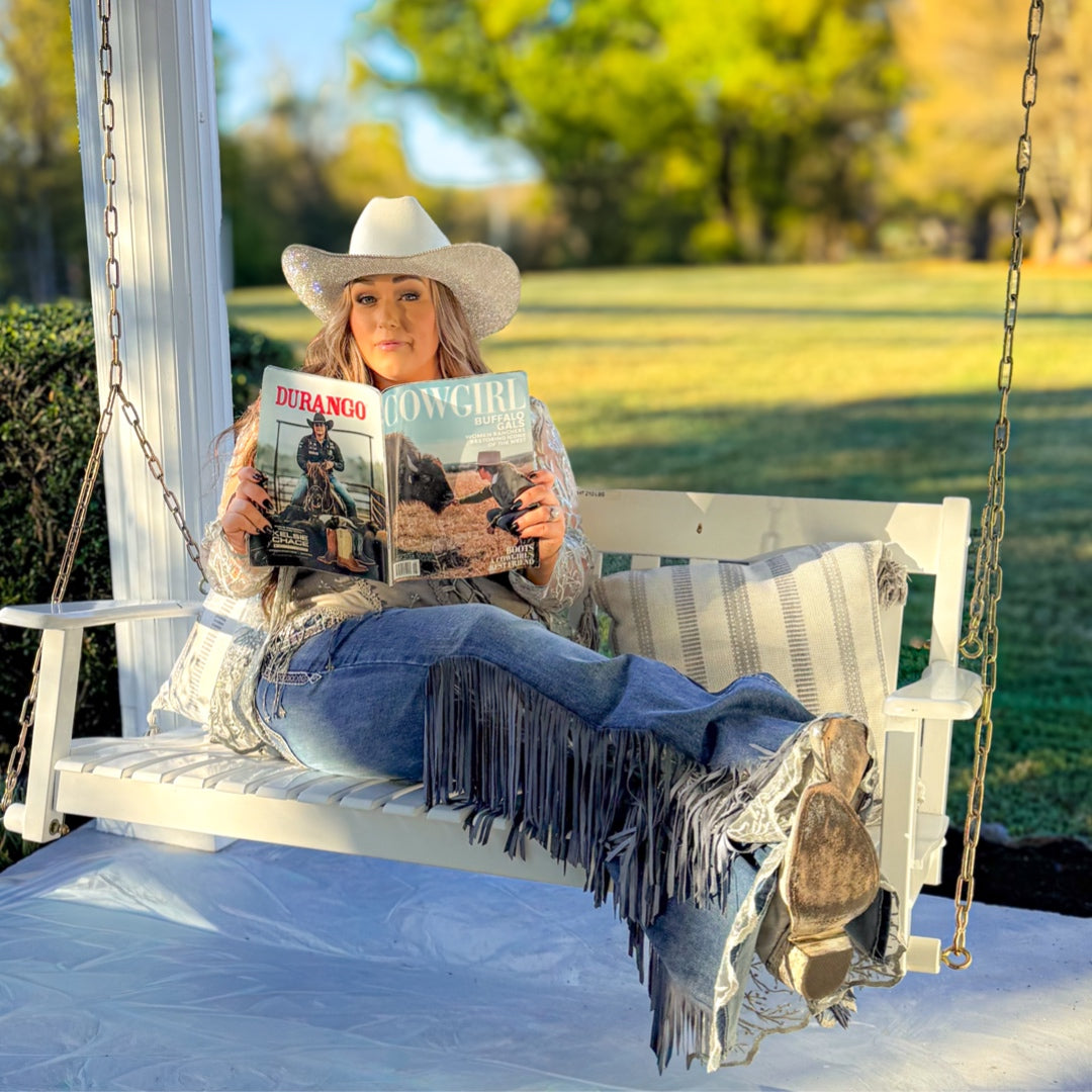 This fun jacket is a must!  So soft, I was surprised to learn its leather. Also from a great company Scully. Such a beautiful shade of mint green. I passed on purchasing this at an event, but then had it shipped to me. It was wrapped with such care and love. I felt very special. Love this boutique and it’s sweet owner. 😍