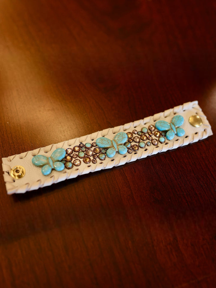 Bone Turquoise Butterfly Crystal Cuff Bracelet