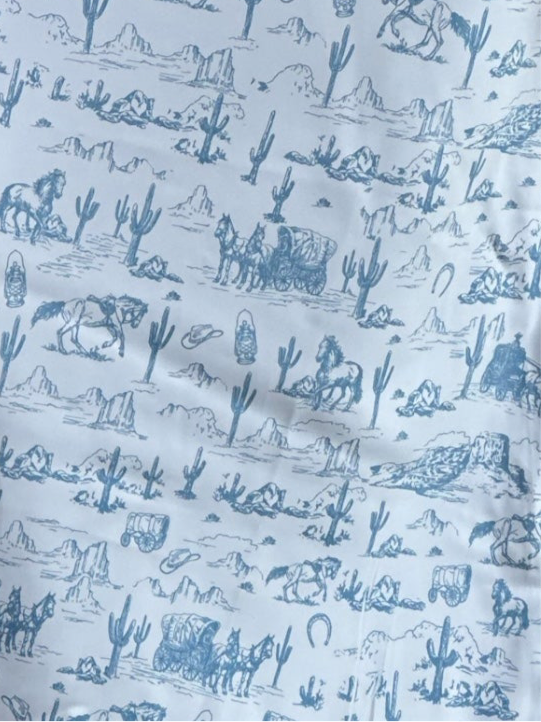 • Authentic western print featuring vintage-inspired cowboy motifs and distressed details