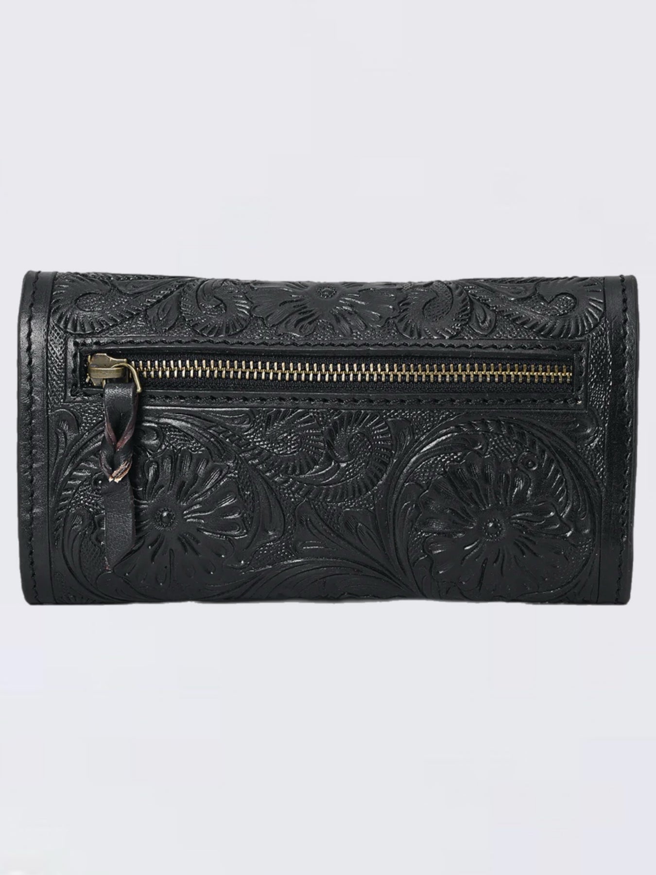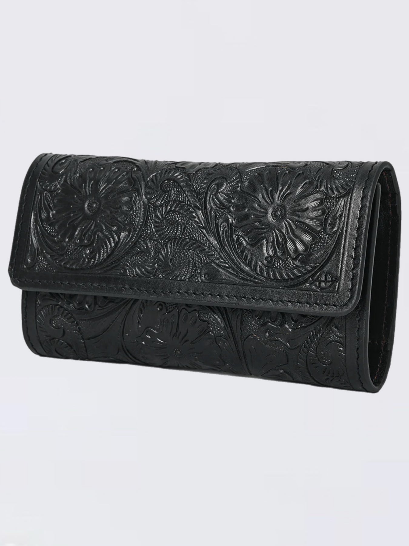 Introducing the ultimate Black Tri-Fold Hand-Tooled Leather Wallet—a stunning fusion of Western artistry and everyday functionality designed for modern cowgirls who refuse to compromise on style or quality. This handcrafted masterpiece captures the soul of authentic Western craftsmanship with its intricate floral tooling and sophisticated black finish. Expertly crafted from genuine full-grain vegetable-tanned leather, this tri-fold wallet represents the highest standard in authentic leather goods
