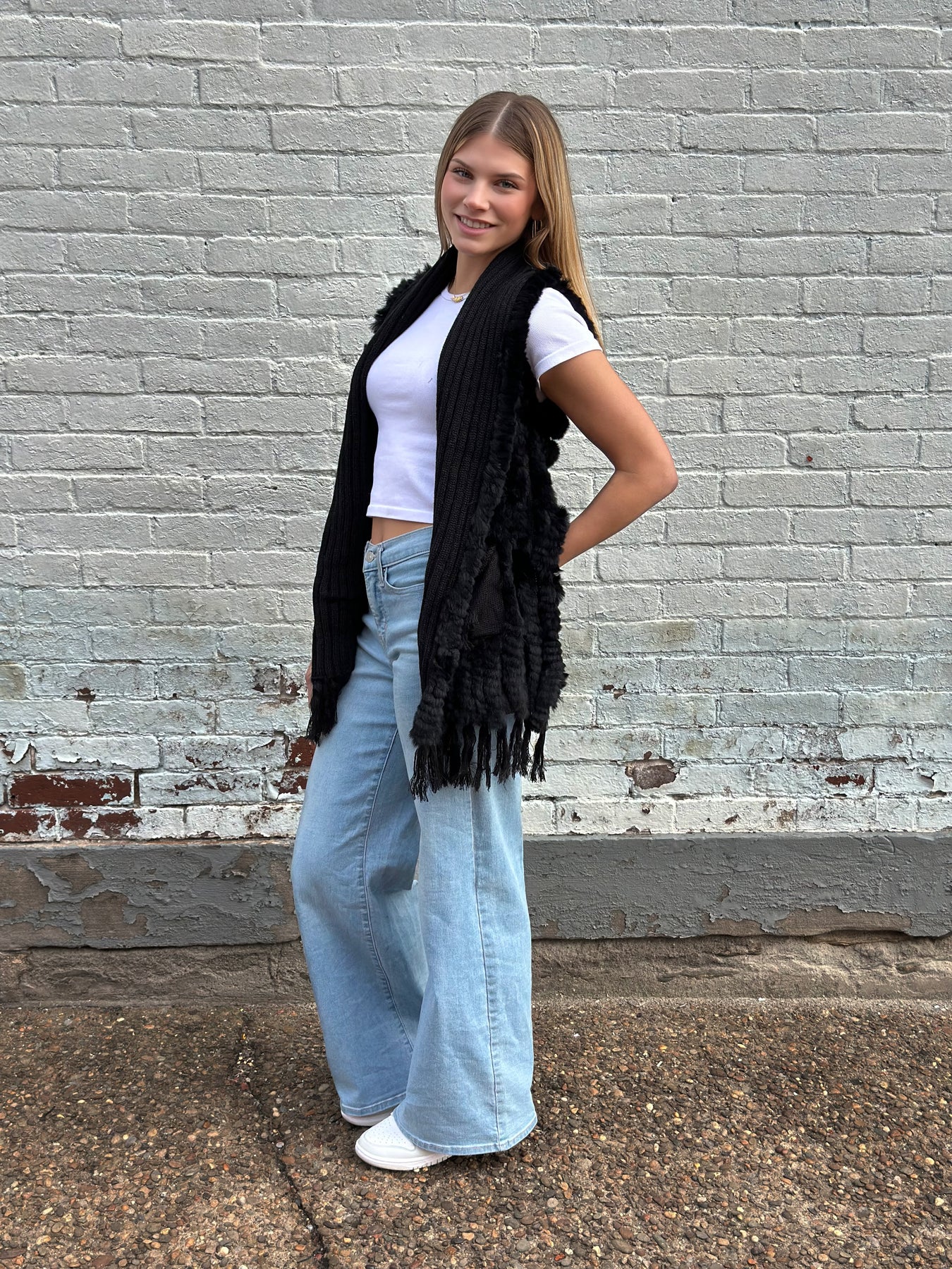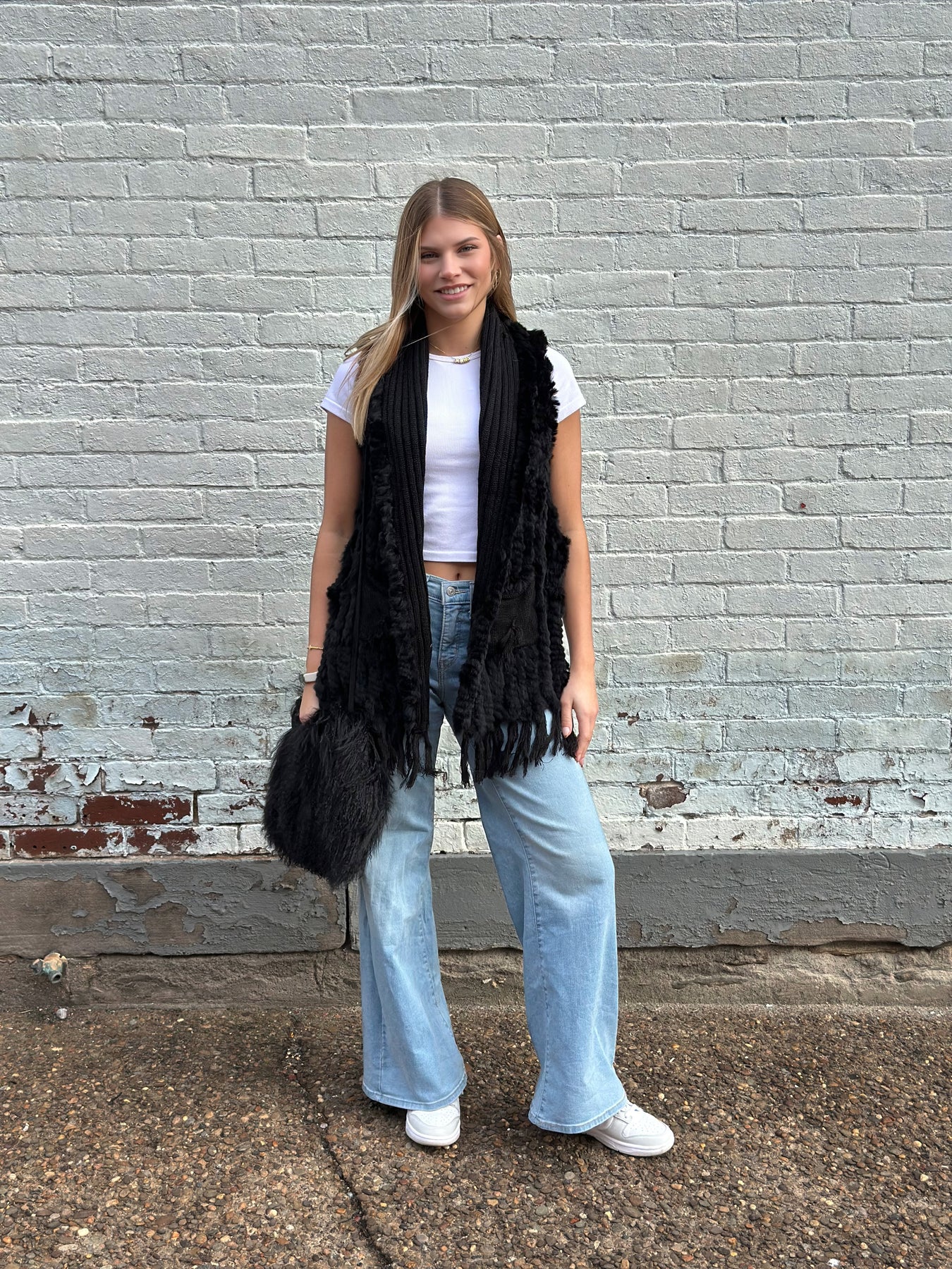 Crafted with genuine Rex rabbit fur seamlessly woven into a sumptuous acrylic-knit blend, this vest strikes the perfect balance between indulgent texture and practical wearability. The plush fur pocket adds a touch of refined opulence.