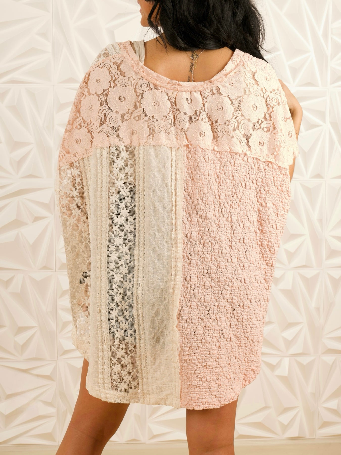 Embrace effortless femininity with this oversized floral lace sleeveless top, a contemporary piece that combines intricate lace design with modern edge details for a perfectly balanced aesthetic. Featuring a soft V-neckline and relaxed oversized silhouette, this women’s lace top transitions seamlessly from casual daytime styling to elevated layering looks