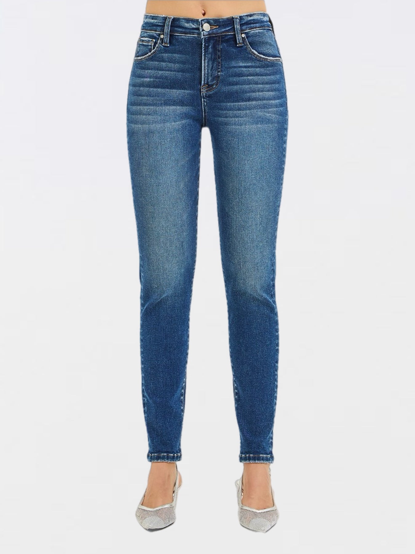 Flattering dark wash denim designed to smooth and support your silhouette while keeping you comfortable all day. These mid-rise ankle skinny jeans combine stretchy, breathable fabric with targeted tummy control technology—the foundation of a perfect work wardrobe, casual weekend looks, or elevated denim styling.