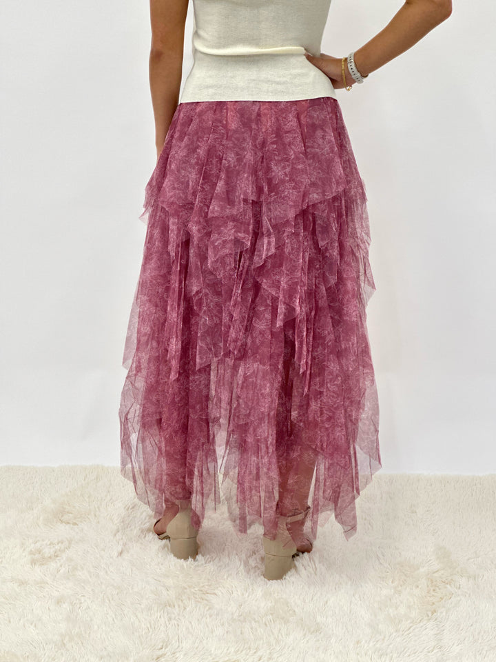 FLORAL PRINTED MESH BALLERINA SKIRT